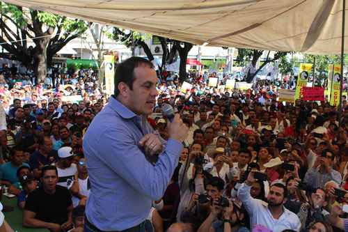 Miles de personas acudieron ayer al zócalo de Cuenavaca para expresar su respaldo al alcalde Cuauhtémoc Blanco, destituido un día antes por el Congreso estatal