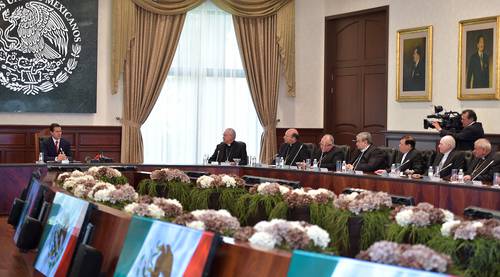 Después, también en privado, Enrique Peña Nieto y sus funcionarios se reunieron con el nuncio apostólico del Vaticano en México, Franco Coppola.