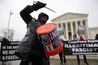 La lluvia en Washington no detuvo a manifestantes que, frente a la sede de la Suprema Corte de Estados Unidos, exigieron detener el régimen fascista de Donald Trump Foto Afp