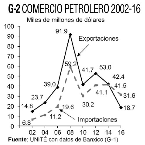 Caro estamos pagando el desatino neoliberal de exportar crudo e importar refinados; de abandonar, corromper y saquear a Pemex; de descuidar la exploración; y de llevarnos a una grave dependencia energética de Estados Unidos, particularmente peligrosa en estos tiempos de agresión de su gobierno a México (Gráfico 2).