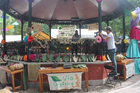 A fin de reforzar esta actividad y difundir la importancia del rescate de semillas, en el rancho-escuela se organizan talleres, visitas y recorridos. A la fecha hemos recibido más de 8 mil visitantes entre jóvenes estudiantes, niñas, niños y público en general, que llegan a conocer el trabajo y a intercambiar experiencias con las y los jóvenes promotores de comunidades vecinas, que ahora forman parte del equipo, entre los que destacan estudiantes de agricultura y agroecología, quienes han contribuido al desarrollo del espacio y del semillero. Asimismo, como parte vital de la producción de alimentos y el consumo responsable, año con año, desde el 2013, Vía Orgánica convoca a la población en general al Festival de Semillas de San Miguel de Allende, cuyo objetivo no sólo es reconocer la trascendencia de su producción y conservación, sino también congregar a las y los productores para fortalecer sus experiencias y sus saberes a través del intercambio de semillas y la historia de cada una de ellas. A lo largo de los festivales, representantes de distintas organizaciones y expertos como Adelita San Vicente, directora de Semillas de Vida; Mercedes López Martínez, representante de la Asociación de Consumidores Orgánicos, y Sergio Barrales, rector de la Universidad Autónoma Chapingo, han abordado distintos temas: “Situación de México y la siembra de maíz transgénico”, “Soberanía y seguridad alimentarias”, “Agricultura y las y los Jóvenes”, entre otros temas, para dar a conocer a la comunidad qué acciones se están tomando y cómo podemos sumarnos. Los festivales abarcan actividades dirigidas a las y los niños (historia y ciclo de vida de una semilla, talleres, exhibición de semillas, intercambio y donación, fábulas y cuentos del sembradío), charlas, teatro, música y hasta arte con semillas. De tal manera que se convierten en unas verdaderas fiestas, esa es la intención, precisamente, compartir a través de diversas actividades la importancia de las y los guardianes de semillas que han hecho posible hoy en día que se conserven todavía una diversidad de maíces, calabazas, frijoles, jitomates y hasta hierbas medicinales. Para ellos una semilla representa fuente de vida, alimento, historia, cultura, patrimonio, diversidad, seguridad, herencia y riqueza. El festival se realiza principalmente en los primero meses del año, con el propósito de aprovechar todo el conocimiento compartido durante el mismo, a fin de comenzar a sembrar a buen tiempo para vivir las experiencias de crecer nuestros alimentos y conocer esa siguiente fase, muchas veces ajena, que es la producción de semillas. Algunas anécdotas de los participantes que han asistido cada año, nos han regalado gotas de inspiración con su trabajo, como productores y productoras, maestros y maestras, llevando las semillas que han cosechado de un festival a otro para intercambiar por otras semillas, o compartir con los nuevos visitantes. El festival de semillas es un ejemplo de convivencia, diversidad, abundancia, saberes y, sobre todo, comunidad; de ser semilla de unidad entre productores y consumidores, de volver a sembrar lazos de confianza y solidaridad.