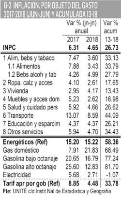 En cifras acumuladas 2013-2018 (jun-jun) el índice general INPC ha aumentado 26.73%, el de la Canasta Básica 32.32%, y el precio de los alimentos 33.79%