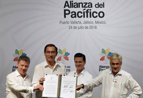 En la misma ruta, el mandatario de Perú, Martín Vizcarra, nuevo presidente pro tempore, dijo que entre las metas de la alianza está incrementar el comercio para superar 5 por ciento de su tasa de intercambios actuales, reforzar el financiamiento para pequeñas y medianas empresas y culminar el proceso de integración de Australia, Nueva Zelanda, Singapur y Canadá como estados asociados.