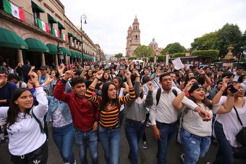 Morelia, Mich., Funcionarios, sindicatos y alumnos de la Universidad Michoacana de San Nicolás de Hidalgo (Umsnh) marcharon la mañana de ayer desde la plaza Morelos hasta el palacio de gobierno y el Congreso del estado para exigir que se reintegren a la institución 550 millones de pesos que le fueron recortados en 2015, además de solicitar a los gobiernos federal y estatal recursos financieros suficientes para que siga operando la casa de estudios, que tiene más de 55 mil alumnos.