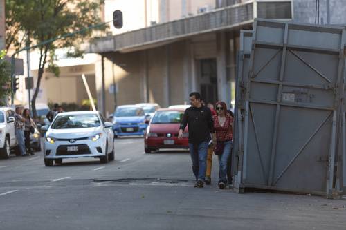 ▲ Elementos de la Policía Federal retiraron ayer algunos tramos de vallas metálicas colocadas en abril de 2015 en calles cercanas a la Secretaría de Gobernación. Aunque en años anteriores se ponían de manera provisional, desde 2015 las láminas de más de dos metros de altura se fijaron con cemento y soldadura en las bocacalles del Palacio de Cobián. Fueron removidas “sólo las vallas viejas” a fin de no entorpecer la vialidad, “pero las normales permanecen. Ya había mucho escombro y fue necesario quitar las más antiguas”, dijeron fuentes de la entidad (Fabiola Martínez).Foto Pablo Ramos