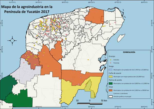 Así como sucede en diversas regiones campesinas e indígenas de México, en la Península de Yucatán las luchas campesinas ya no son por la propiedad y titulación de las tierras, como sucedió durante más de 50 años del siglo pasado. Las luchas hoy día tampoco son por el control de los procesos productivos vinculados al aprovechamiento forestal o la comercialización del café y muchos otros productos que durante los ochentas y noventas movilizaron a cientos de comunidades. Hoy las luchas campesinas e indígenas son por la defensa del territorio. Armando Bartra afirma que “el combate más visible es defensivo y se libra en los llamados territorios: espacios en disputa donde las comunidades indígena y mestizas tratan de preservar su patrimonio y su vida, amenazados por codiciosas corporaciones”. En el visualizador para la Península de Yucatán, desarrollado por el Consejo Civil Mexicano para la Silvicultura Sostenible y Geocomunes, es muy evidente el avance de las “codiciosas corporaciones”. Además, existen claros indicadores de un creciente interés de inversionistas para apropiarse del territorio para desarrollar proyectos turísticos, energéticos y agropecuarios. En referencia a los proyectos agropecuarios, estos inician con el despojo de sus tierras a los campesinos a través de múltiples mecanismos. Además se desarrollan en grandes extensiones con el uso intensivo de fertilizantes, insecticidas, herbicidas y semillas transgénicas contaminando el agua, el suelo y el aire y devastando las selvas. El visualizador pone a disposición datos de gran valor como el crecimiento de las siembra de soya en la Península, cuya superficie se incrementó entre el 2005 y el 2018 en más de 900%. Para el caso del sorgo, el crecimiento fue de 700%; para la palma africana fue de 500% y el cultivo de la caña de azúcar casi se duplica en ese periodo. Al revisar los datos de la instalación de naves porcícolas y apícolas los datos también son impactantes; las primeras se incrementaron un 68% y las segundas un 34%. El incremento de las inversiones de empresas privadas en proyectos agroindustriales es notable y desde la perspectiva de algunos pudiera verse como positivo, dado que se genera mayor disponibilidad de alimentos y empleos… Sin embargo, este crecimiento se está dando bajo esquemas no-sostenibles, afectando la base de los recursos. Se trata de proyectos que generan prosperidad pero solo para unos cuantos inversionistas que no habitan en la región. Las poblaciones locales son las más afectadas por la contaminación que impacta negativamente su medios de vida y limita su desarrollo. Ha sido ampliamente documentado la afectación de miles de apicultores que han perdido sus colmenas debido a las fumigaciones en decenas de ejidos. El cambio de uso de suelo ligado al cultivo de la palma africana, la soya, el sorgo y la caña de azúcar está ampliamente documentado y genera un grave proceso de deforestación que sitúa, de acuerdo con el Global Forest Watch, a Campeche, Yucatán y Quintana Roo dentro de los 5 estados que más bosque y selva han perdido en años recientes.•