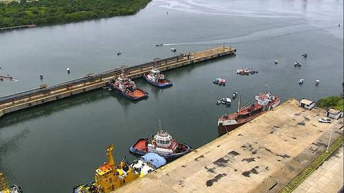 ▲ El tráfico marítimo en el puerto de Lázaro Cárdenas, Michoacán, fue reabierto anoche, luego de casi 36 horas de ser bloqueado por pescadores que protestaron por la contaminación causada por los buques cargueros que, aseguran, afecta a su actividad.  La Asociación Mexicana de Agentes Navieros  reportó que al menos 10 barcos estaban varados y no se podían descargar o subir mercancías, desde combustibles y materias primas hasta manufacturas de 6 mil contenedores.Foto : AMANC
