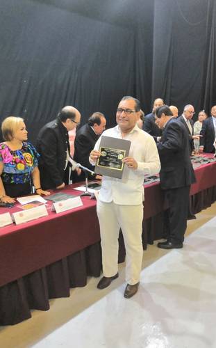 ▲ El corresponsal de La Jornada en Tabasco, René Alberto López, recibió ayer el reconocimiento del Club Primera Plana por 40 años de trayectoria periodística. La ceremonia se realizó en el Teatro de la Ciudadela en la Ciudad de México.Foto La Jornada