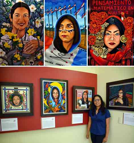 Zacatecas, Zac., La joven pintora mixteca Guadalupe Reyes Chávez monta en la capital de Zacatecas la primera etapa de su iniciativa Mujeres y lenguas que abren camino en la que con retratos y una breve reseña visibiliza a creadoras en las artes plásticas, la música, la poesía, la lucha social y comunitaria que dan vida a las 68 lenguas de los pueblos originarios reconocidas de manera oficial en México.