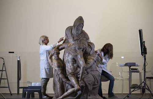 Personal del Museo dell’Opera del Duomo en Florencia, Italia, comunicó el miércoles que la limpieza de la Piedad florentina (también llamada Piedad Bandini), que comenzó el año pasado pero se suspendió debido a la pandemia del coronavirus, fue reanudada y que el público ahora puede acudir en grupos pequeños a ver a los restauradores trabajando.