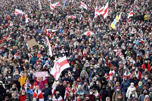 Cerca de 200 personas fueron detenidas ayer en las protestas en Bielorrusia, informó el centro proderechos humanos Viasna, que no cuenta con un registro oficial ante las autoridades. La mayoría de los arrestos se reportan en Minsk (la marcha, en la imagen), entre ellos hay al menos cuatro periodistas. El Departamento de Policía de la capital bielorrusa informó horas antes a la agencia de noticias Sputnik que hubo detenciones, sin precisar cifras. Las movilizaciones en el país comenzaron el pasado 9 de agosto, cuando se celebraron las elecciones presidenciales que, según el escrutinio oficial, otorgaron un nuevo mandato a Alexandr Lukashenko, en el poder desde 1994.
