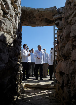 ▲ En la zona arqueológica de Tulum, el presidente Andrés Manuel López Obrador firmó con los gobernadores de Tabasco, Chiapas, Campeche, Yucatán y Quintana Roo el convenio para el ordenamiento territorial y urbano que generan las obras por donde pasará el Tren Maya. El mandatario expuso que la inversión conjunta en la región será de 200 mil millones de pesos. En el acto estuvo el representante de ONU-Hábitat México, Eduardo López Moreno. Foto Presidencia