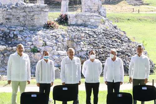 Desde la zona arqueológica de Tulum, durante la firma del Convenio para el Programa Regional de Ordenamiento Territorial, encabezada por el presidente Andrés Manuel López Obrador, el gobernador chiapaneco, Rutilio Escandón Cadenas, reiteró el compromiso de trabajar con responsabilidad y transparencia en la aplicación de este instrumento que busca promover un modelo de ordenamiento ecológico, integral y sustentable, que se armonice con el desarrollo de los asentamientos urbanos y rurales de los estados involucrados en el proyecto del Tren Maya.