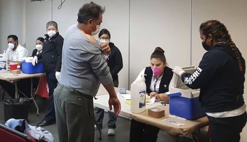 ▲ Trabajadores de hospitales estatales y municipales de Chihuahua recibieron ayer la vacuna de Pfizer contra el coronavirus, que corresponde al segundo lote que llegó la noche del miércoles al estado, informó la subdirectora de Medicina Preventiva y Promoción de la Salud, Wendy Ávila. Con esta aplicación se pretende completar la primera etapa de inmunización de médicos, enfermeras, camilleros y demás personal que tiene contacto con infectados.Foto Jesús Estrada