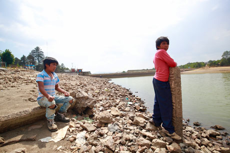 ▲ Durante un recorrido por las zonas e instalaciones que forman parte del Sistema Cutzamala, de donde proviene 33 por ciento del agua que abastece a la Ciudad de México, La Jornada constató que tienen un nivel claramente bajo respecto al usual en esta época del año, como la de Villa Victoria (imagen), con capacidad de 185 millones de litros cúbicos, y ahora se encuentra en 33.9 por ciento de ésta, cuando lo normal en abril es de 63.4. Según Nicolasa Mondragón Díaz, quien ahí lava su ropa,