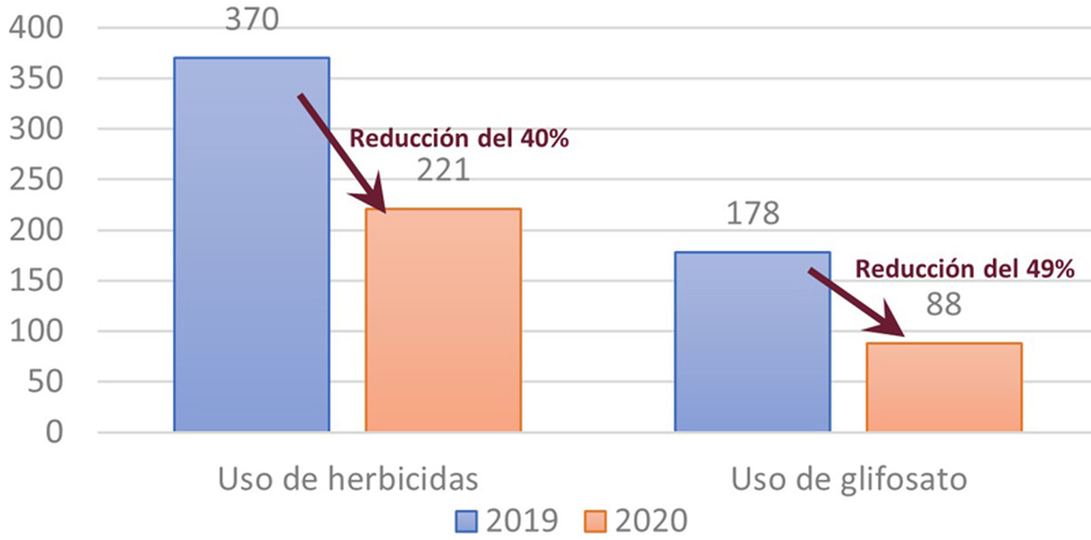 El uso de herbicidas se redujo en 40% y el uso de Glifosato se redujo en 49% respecto al ciclo homólogo anterior.