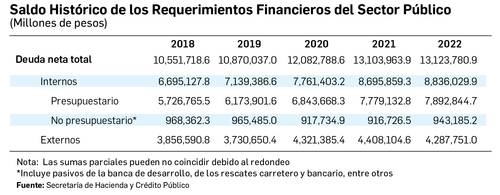 En la Cuenta Pública 2021 se detalla que en el gobierno federal (que considera la administración central, no todo el sector público), el endeudamiento interno neto fue de 701 mil 98 millones de pesos, a lo que se suman ajustes contables al alza por 172 mil 251 millones de pesos; mientras el externo alcanzó 4 mil 560 millones de dólares, el cual se acompañó de una reducción de 2 mil 59 millones de dólares debido a las operaciones de manejo de la deuda y a la variación del dólar respecto a otras monedas.