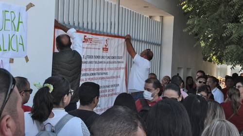 La Paz, BCS., Profesores de la sección 3 del Sindicato Nacional de Trabajadores de la Educación (SNTE) tomaron durante 24 horas las instalaciones del centro de la Secretaría de Educación Pública (SEP) e instalaron un plantón frente al palacio de gobierno estatal, el cual no retirarán, advirtieron, hasta que sus demandas sean atendidas.