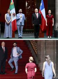 El mexicano recibió a su par chileno en Palacio Nacional, donde sostuvieron un diálogo junto a sus compañeras Beatriz Gutiérrez Müller e Irina Karamanos Adrian. También se reunieron las delegaciones de los países, conformadas por funcionarios de alto nivel de ambas administraciones.
