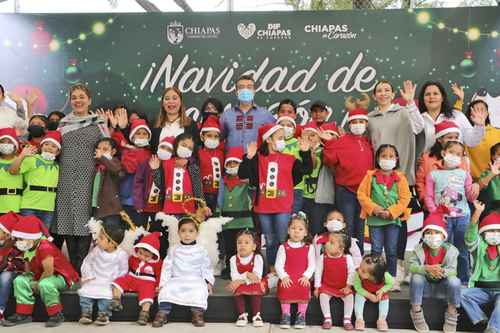El gobernador Rutilio Escandón Cadenas visitó la Casa Hogar Infantil del Sistema DIF Chiapas, donde celebró la Navidad y entregó regalos a las niñas y los niños, al tiempo de reiterarles el compromiso de que todas las instancias de su gobierno estarán al pendiente de que cuenten con todo lo indispensable, especialmente en alimentación, educación y salud, a fin de crezcan sanos y felices. Entregó un vehículo de transporte, debidamente equipado, en beneficio de dicho centro de asistencia. “Es satisfactorio convivir con ustedes y ver que estos regalos les permiten estar alegres en estas fechas navideñas. Vamos estar al pendiente de que tengan todo, porque nuestro mayor sueño es que puedan crecer en espacios seguros, sanos y llenos de felicidad”.