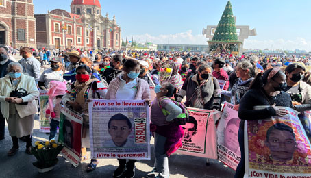 ▲ Familiares de los 43 normalistas marcharon de la ex glorieta de Peralvillo a la Basílica de Guadalupe, donde fue oficiada una misa como parte de la 99 Acción Global por Ayotzinapa. Antes de ingresar pasaron lista de los estudiantes ausentes. Melitón Ortega, integrante del Comité de Padres, expuso que en los meses recientes no han tenido reuniones con las autoridades federales.