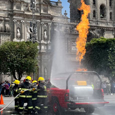 ▲ En el Zócalo capitalino los cuerpos de emergencia federales y locales realizaron ejercicios de reacción y atención ante un hipotético sismo de magnitud 8, con epicentro en Acapulco. en 23 mil 980 inmuebles de la Ciudad de México se realizó el segundo simulacro nacional. Foto Roberto García Ortiz