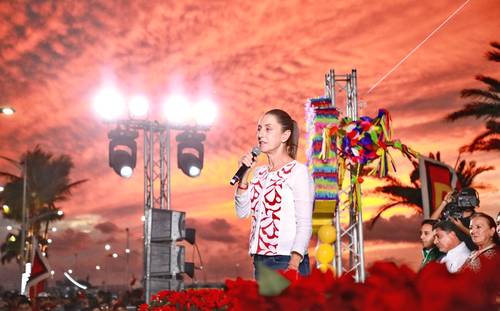 Aseguró que entre sus objetivos siempre estará asegurar que todos los mexicanos de esta entidad puedan gozar de la prosperidad compartida (como sucederá con la inauguración de obras como el Ferrocarril del Istmo de Tehuantepec), contrario a lo que pasaba con los gobiernos neoliberales, en los que los privilegios siempre fueron la prioridad. Antes, en sus redes sociales, Sheinbaum ofreció dar continuidad al tren interoceánico, “otro proyecto visionario del presidente Andrés Manuel López Obrador”.