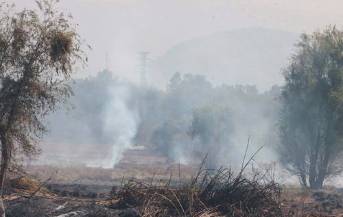 “Nosotros usamos cubrebocas y colocamos trapos húmedos en ventanas y puertas para evitar que el humo entre”, afirmaron residentes de la calle Magallanes, colonia Rincón Echegaray, afectada por las columnas de humo que se reavivaron ayer. Vecinos del sector, al igual que de la colonia Diez de Abril, exigieron que el vaso regulador sea conservado como humedal. Consideraron que ese paraje podría recibir líquido del río Hondo, al que llegan descargas residuales de la Ciudad de México y su zona conurbada.