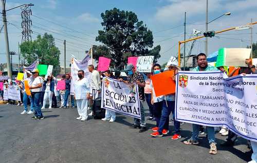Tepotzotlán, Méx., Personal sindicalizado de diversos hospitales del Instituto de Salud del Estado de México (ISEM) suspendió ayer actividades en algunos centros hospitalarios e impulsó tres bloqueos simultáneos, de media hora cada uno en la autopista México-Querétaro y la carretera Lechería Texcoco, para exigir el cumplimiento de compromisos y mejoras laborales, medicamentos, insumos y equipos.
