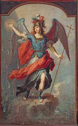 San Miguel Arcángel, c. 1760, atribuido a Miguel Cabrera, obra que forma parte de la exhibición.Foto cortesía del recinto