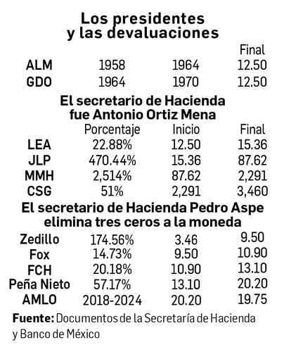 El presidente López Obrador termina su sexenio hoy a medianoche, su desempeño seguirá siendo objeto de encendidos debates por mucho tiempo, la historia suele ser lenta para emitir juicios definitivos. Sin embargo hay algo que está fuera de discusión: no devaluó el peso. Al contrario, se revaluó 45 centavos, frente al dólar en relación con la cotización que tenía el último mes del gobierno de su antecesor, Enrique Peña Nieto. López Obrador rompió una cadena de devaluaciones que produjeron dolor y pobreza al pueblo. Comenzó con el presidente Luis Echeverría cuando dejó caer la moneda el 31 de agosto de 1976 y se prolongó en los sexenios de José López Portillo, Miguel de la Madrid, Carlos Salinas de Gortari, Ernesto Zedillo, Vicente Fox, Felipe Calderón y el ya mencionado Peña Nieto. En ese periodo perdió más de 100 mil por ciento de su valor.