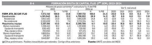 anto la Oferta como la demanda totales de la economía sumaron en el primer semestre del año 44 billones 821 mil millones de pesos en cifras anualizadas (x2), y su crecimiento real (sin inflación) fue 2.4%, el más bajo desde la pandemia (gráfico 1).