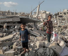 ◀ A un año del inicio de la guerra, la Comisión Europea y la cúpula política de Estados Unidos responsabilizaron a Hamas de la crisis en Medio Oriente y del sufrimiento en Gaza (en la imagen). En las universidades del país norteamericano resurgieron las manifestaciones en pro del alto el fuego. Foto Xinhua