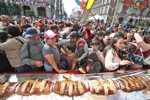 El tradicional pan, que requirió varios días de elaboración, se repartió en alrededor de 40 mil raciones entre la multitud que desde temprano se formó detrás de las vallas metálicas dispuestas en la Plaza de la Constitución para controlar el acceso.