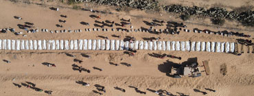 ▲ Palestinos que volvieron a lo que queda de sus hogares, tras el cese de las hostilidades, entierran 54 cuerpos no identificados en el cementerio de Deir al Balah, en el centro de la franja de Gaza. Foto Afp