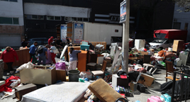 ◀ Alrededor de 70 hombres y mujeres irrumpieron la madrugada de ayer en el predio de Antonio Caso 163, alcaldía Cuauhtémoc, para golpear, robar y expulsar a decenas de familias, que denunciaron la ausencia de acompañamiento legal y amenazas con armas de fuego. Foto Alfredo Domínguez.