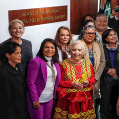 ▲ Para reconocer sus aportes como una figura central de la literatura mexicana, que ha marcado a generaciones con su obra y su compromiso social, el Senado bautizó la sala de comparecencias con el nombre de la escritora de 93 años. Foto Marco Peláez / Ángel Vargas