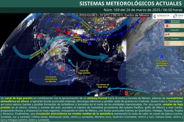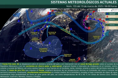 Un canal de baja presión sobre el noreste y oriente del país ocasionará lluvias e intervalos de chubascos en el norte, noreste, oriente y centro del territorio nacional.