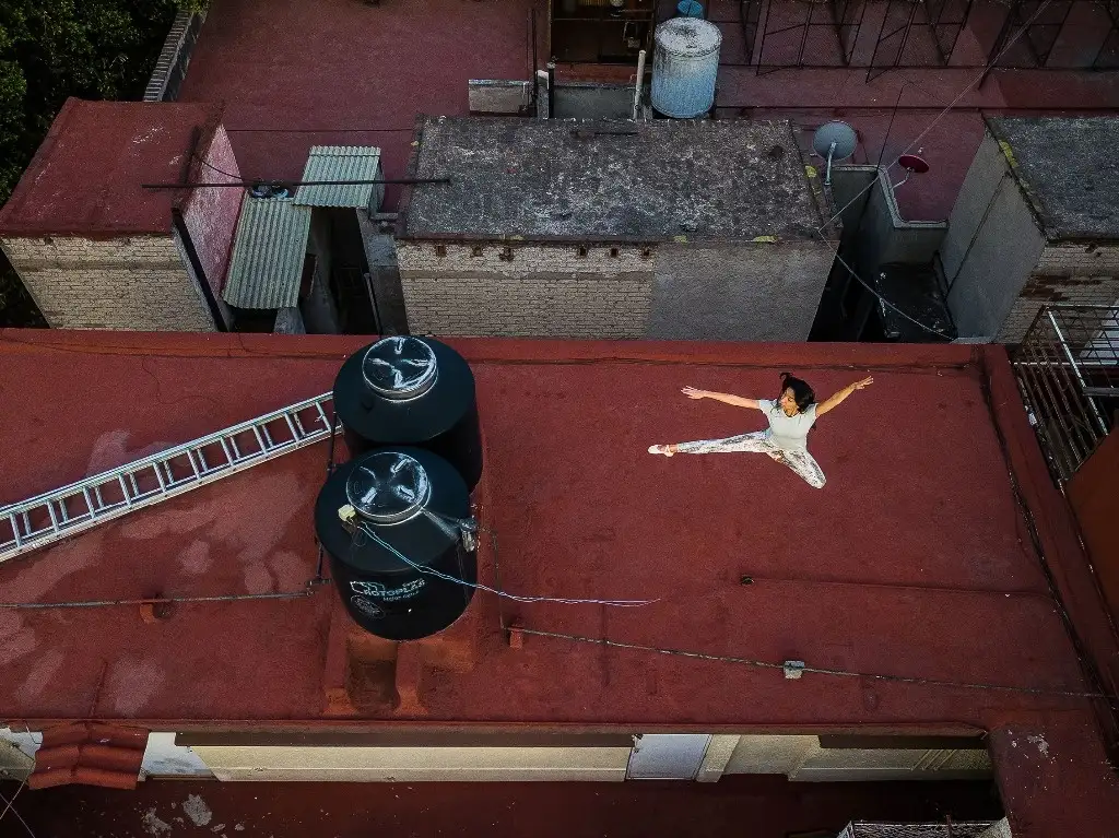 Carolina, bailarina profesional e instructora de danza clásica, practica en la azotea de su vivienda. Foto: Notimex/ Isaac Esquivel