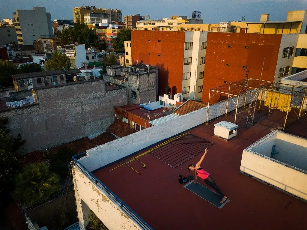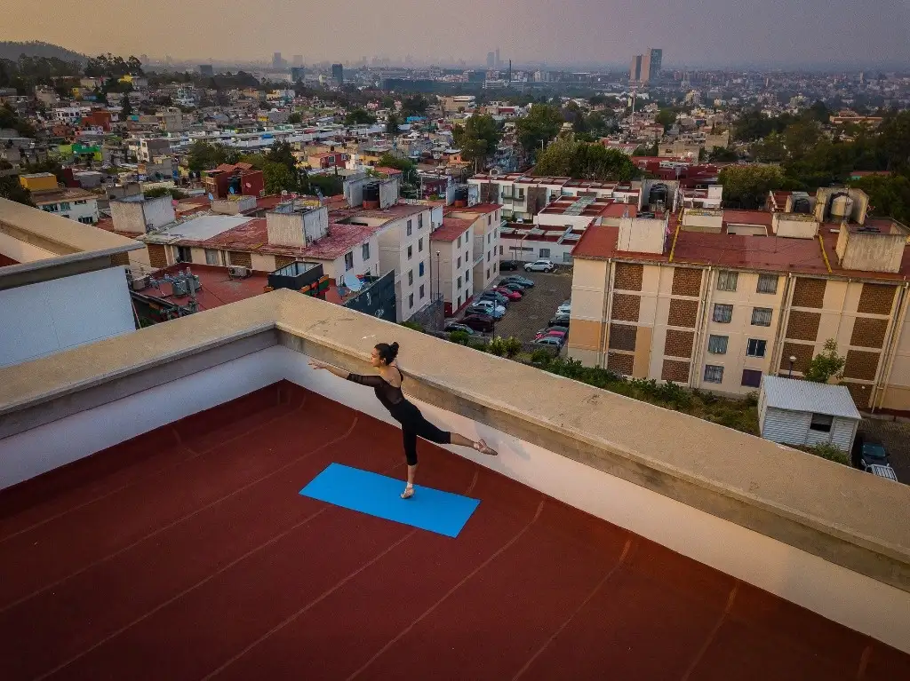 Para Diana, la azotea ya era un espacio de uso habitual, durante esta cuarentena, no dudó en regresar a practicar yoga ahí.Foto: Notimex/ Isaac Esquivel