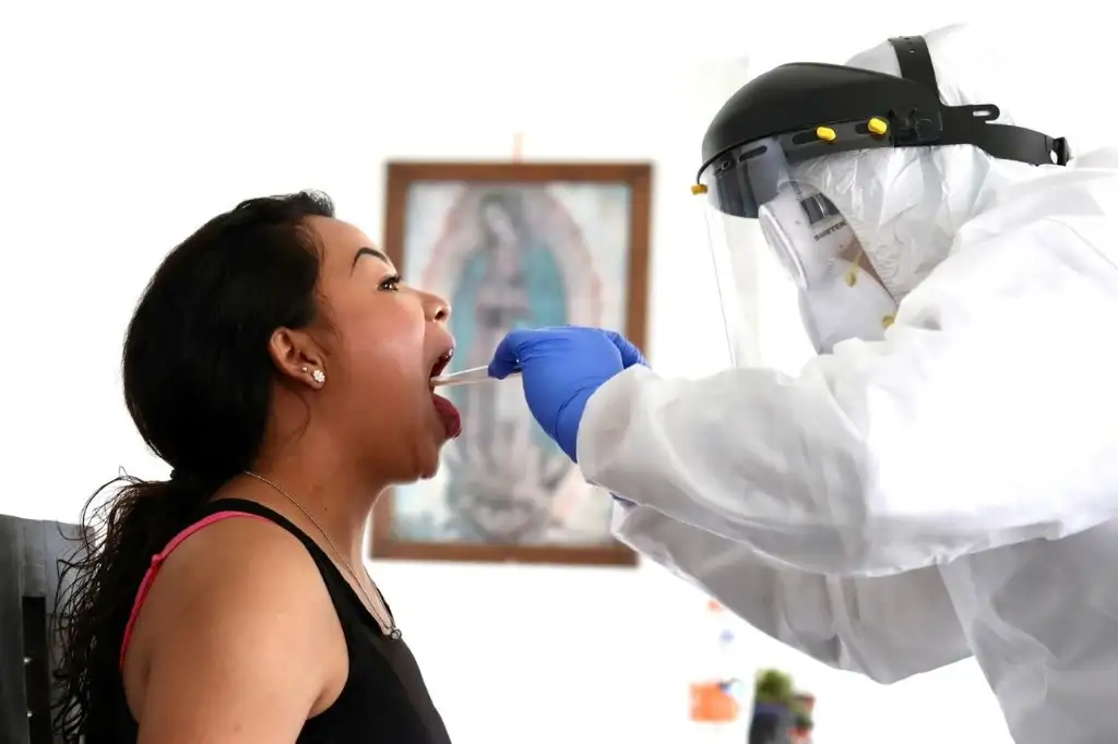 Eduviges, de 25 años de edad, recibe la visita del binomio médico. Llegaron con la expectativa de darlo de alta, pero sigue con tos seca, así que tendrá que continuar en aislamiento. Foto Luis Castillo/ La Jornada