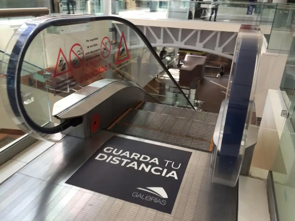 Señalizaciones, como flechas, fueron colocadas en el piso de Galerías Coapa para indicar el flujo de la circulación de los visitantes. Foto Cristina Rodríguez