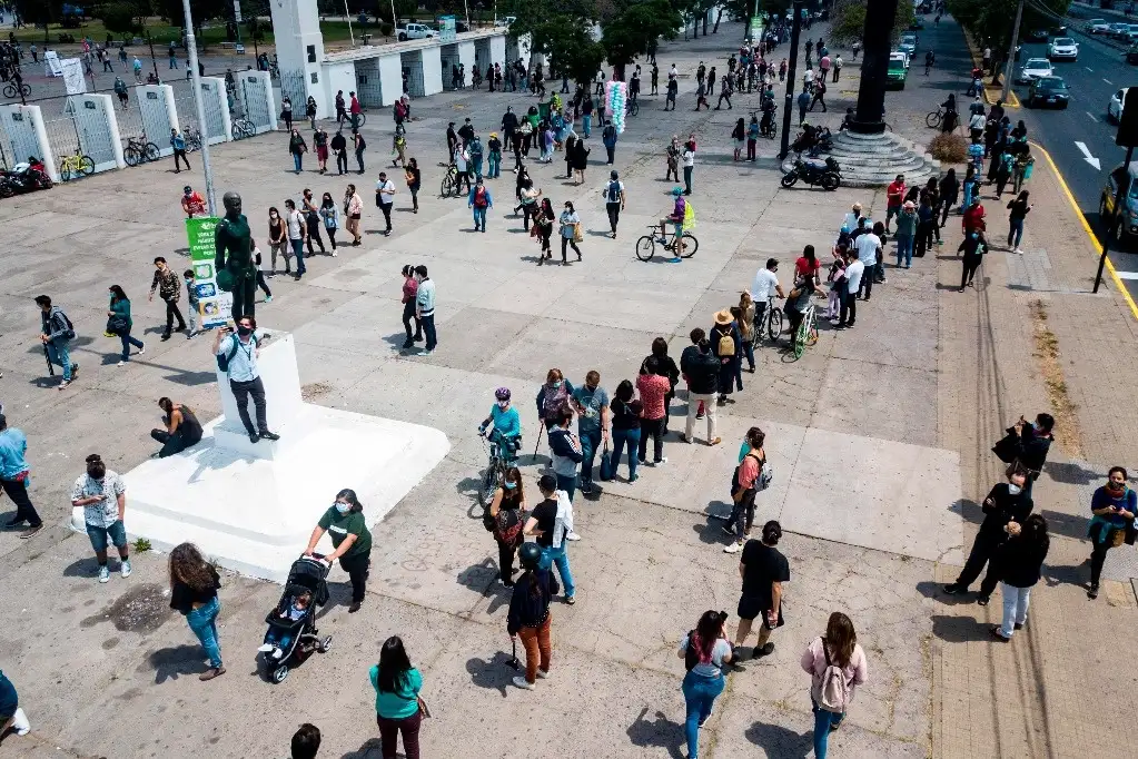 Decenas de ciudadanos realizaron fila para emitir su voto en un referéndum constitucional en una mesa de votación en el Estadio Nacional de Santiago. Foto AFP / Javier Torres
