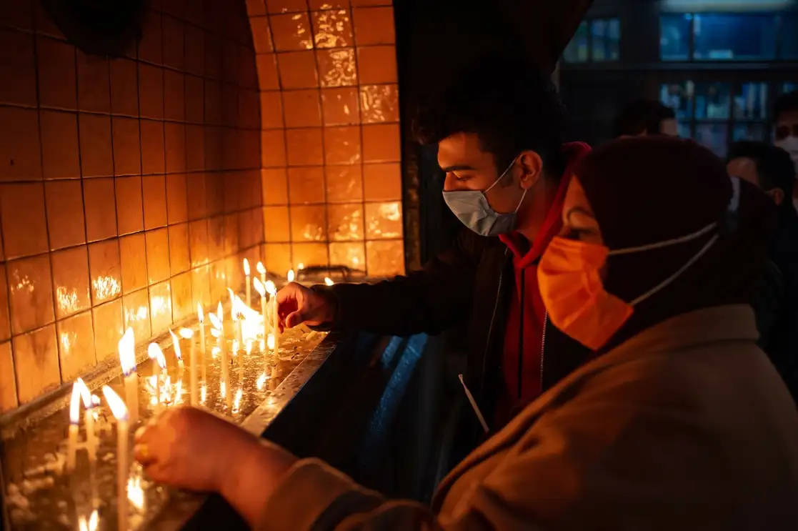Estambul. Cristianos encienden velas mientras asisten a una misa de Nochebuena en la Catedral del Espíritu Santo, en la capital turca. Foto Afp / Yasin Akgul
