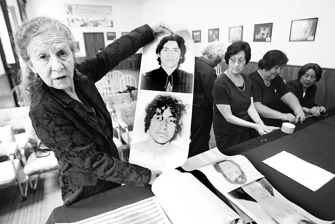 Protesta frente a la Procuraduría General de la República, luego que la agrupación Eureka levantara denuncias por los desaparecidos políticos, el 28 de agosto de 2001. Foto José Carlo González