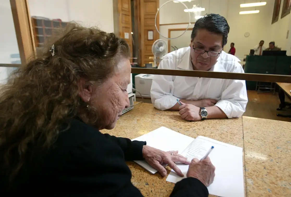 Rosario Ibarra de Piedra firma una solicitud a la Suprema Corte de Justicia de la Nación para evitar la extradición de seis vascos presos en México, el 9 de marzo de 2006. Foto José Antonio López