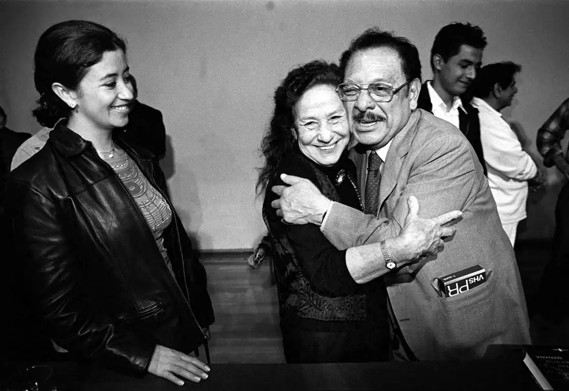 Con Juan Bañuelos tras la presentación del libro "El traje que vestí mañana", en el Palacio de las Bellas Artes, el 11 de febrero de 2001. Foto Cristina Rodríguez
