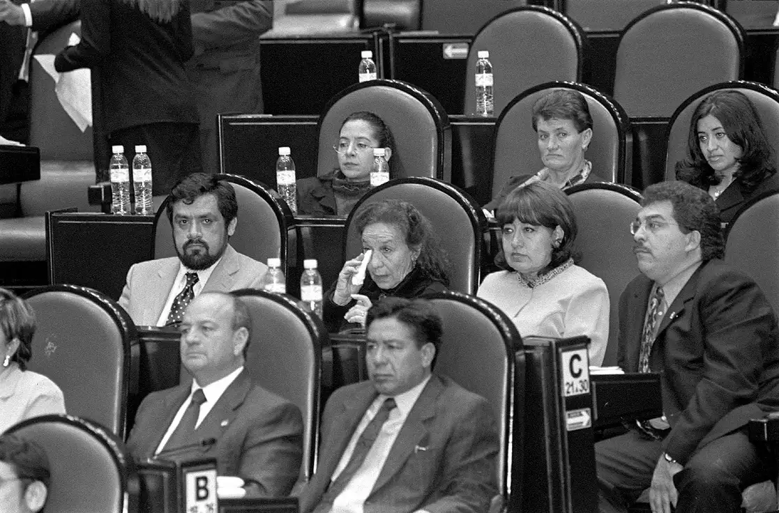 Rosario Ibarra de Piedra lloró durante la aprobación en la Cámara de Diputados de las modificaciones al código penal que tipificó como delito la desaparición de personas, el 21 de diciembre de 2000. Foto José Antonio López