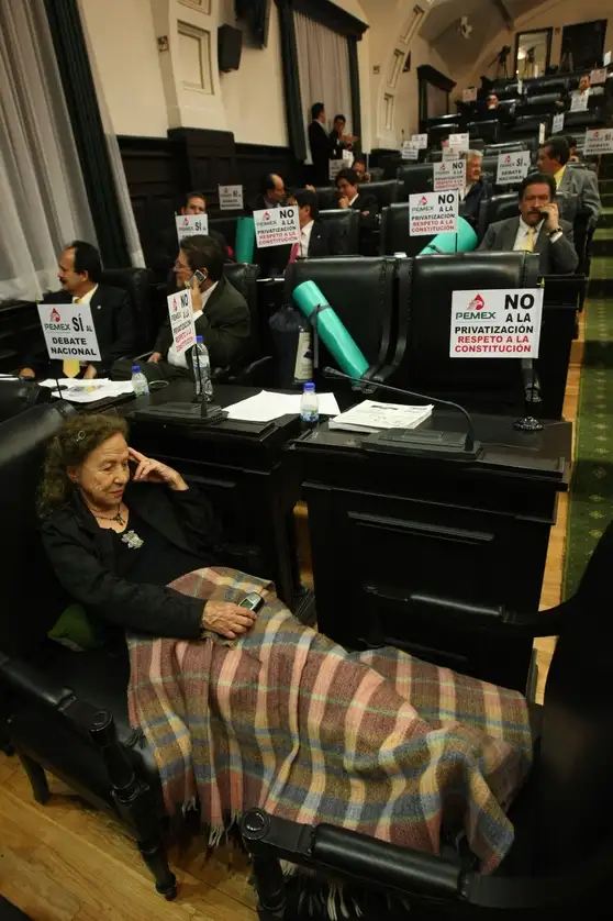 Tras la toma de la tribuna del pleno del Senado de la República, como protesta en contra de la iniciativa de la Reforma Energética, el 10 de abril de 2008. Foto José Carlo González