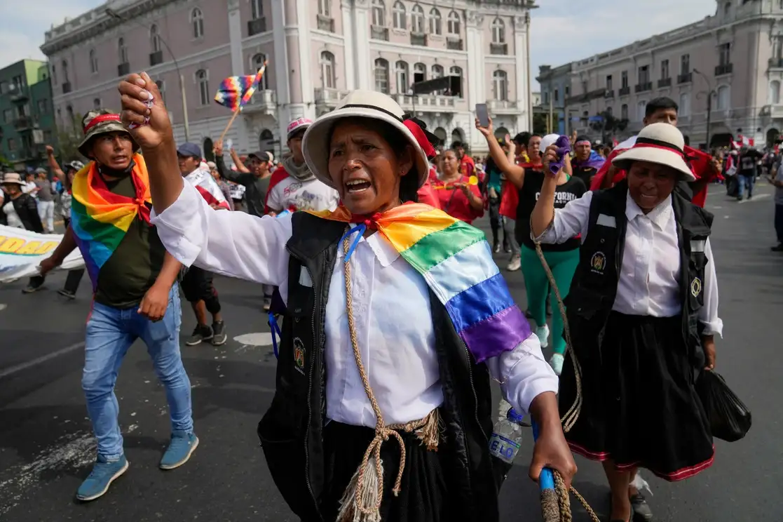 Activistas bautizaron la manifestación del jueves como la “Marcha de los cuatro suyos” en referencia a los cuatro puntos cardinales del imperio inca. Foto: Ap/ Martín Mejía